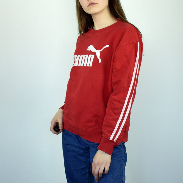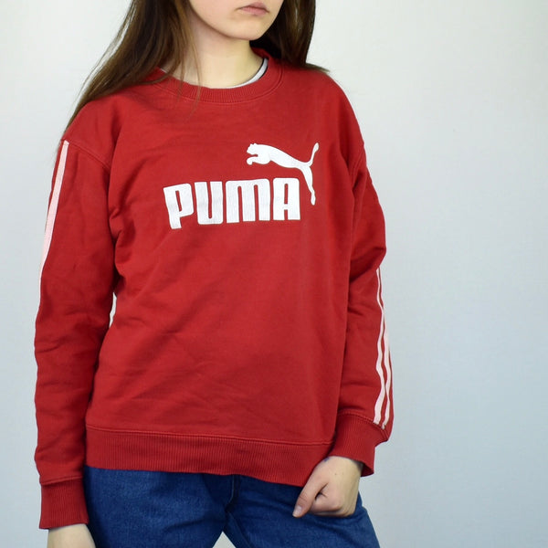 Vintage Puma sweatshirt jumper sweater pullover hoodie in red. Unisex. Same/Next day postage, instant buy is on! Very good condition. Has a big logo on the front. Size S best fitting. Model is 163cm/5ft4. Please message with any questions 👌
