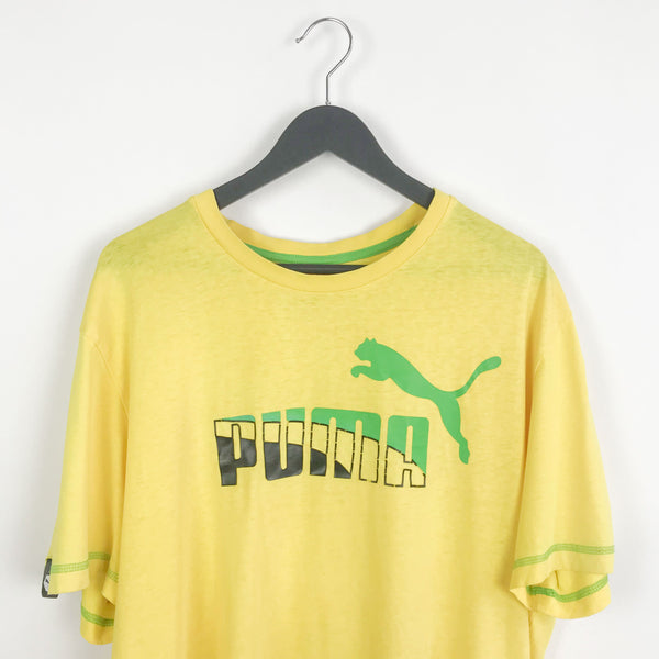 Vintage Puma t-shirt tee blouse top in yellow. Unisex. Same/Next day UK postage, instant buy is on! Label says XXL. We recommend L. Good condition. Faults are shown in the picture: fabric has a small hole on the side. Has a logo on the front. Measurements: * Pit to pit - 25in/56cm * Top to bottom - 29in/73cm * Pit to cuff - 2.5in/6cm Please message with any questions AT2