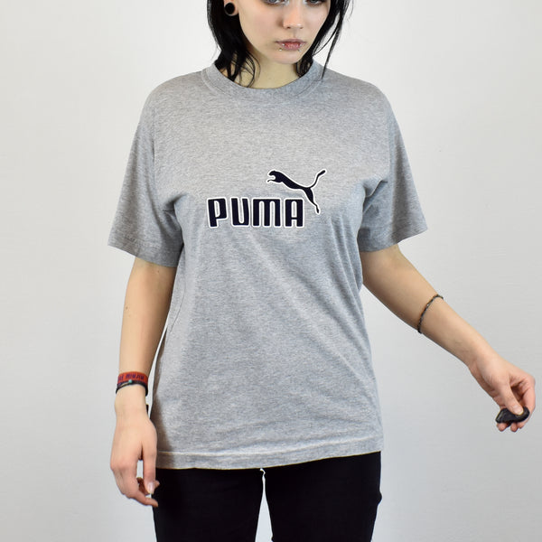 Vintage Puma t-shirt top blouse tee in gray. Unisex. Same/Next day postage, instant buy is on! Very good condition. Size S best fitting. Model is 165cm/5ft5. Please message with any questions 👌