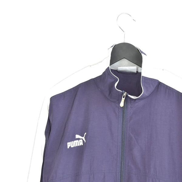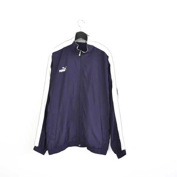 Vintage Puma windbreaker zip up tracksuit track jacket trackie sweater jumper sweatshirt pullover long sleeve in dark blue and white. Unisex. Same/Next day UK postage, instant buy is on! Great condition. Features logo on the front. Label says XL, we recommend XL. Measurements: * Pit to pit - 22in/56cm * Top to bottom - 27in/70cm * Pit to cuff - 20in/50cm Please message with any questions XL