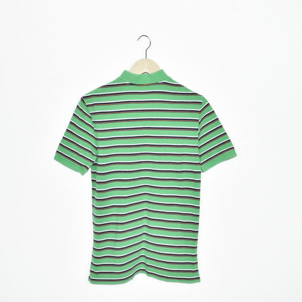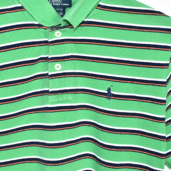Vintage Ralph Lauren polo shirt t-shirt pullover in bright green with stripes. Unisex. Same/Next day postage, instant buy is on! Very good condition. Features a small logo on the front. The back is longer than the front. Label says children’s L, we recommend XS.