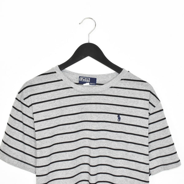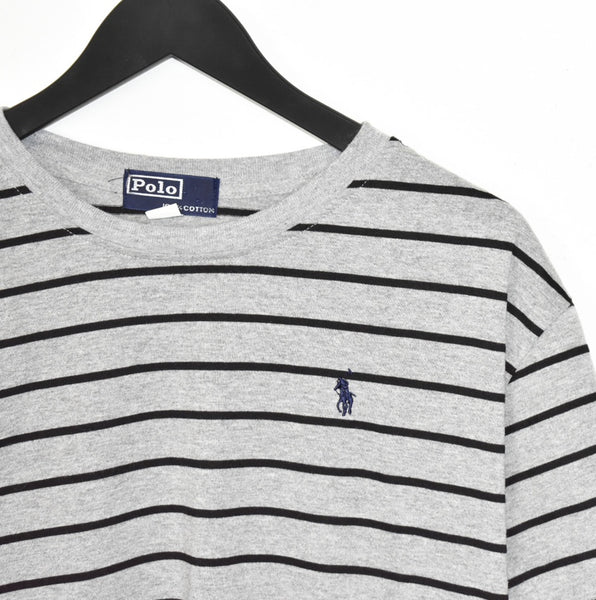 Vintage Ralph Lauren t-shirt tee blouse top in grey and black. Unisex. Same/Next day UK postage, instant buy is on! Size L best fitting. Great condition. Has a logo on the front. Measurements: