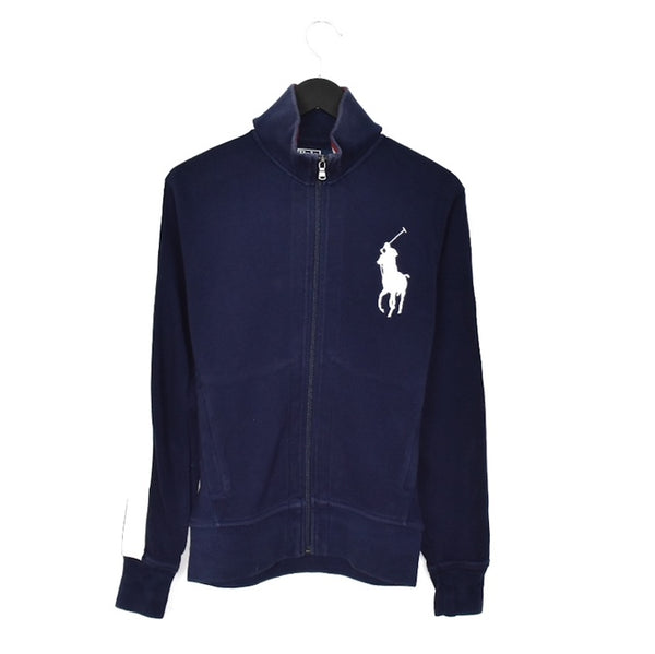 Vintage Ralph Lauren zip up hoodie pullover sweatshirt windbreaker fleece track jacket in blue and white. Unisex. Same/Next day postage, instant buy is on! Very good condition. Has a big logo on the front. Label says S, we recommend S.