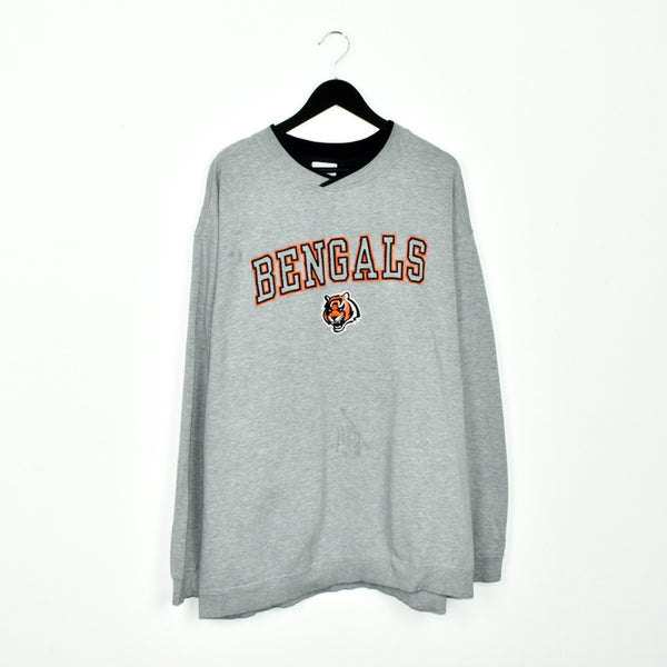 Vintage Reebok jumper longsleeve tee pullover sweatshirt in greg. Unisex. Same/Next day postage, instant buy is on! Good condition. Has a stain on the front as shown in the picture. Has a cool Bengals design on the front. We recommend 2XL.
