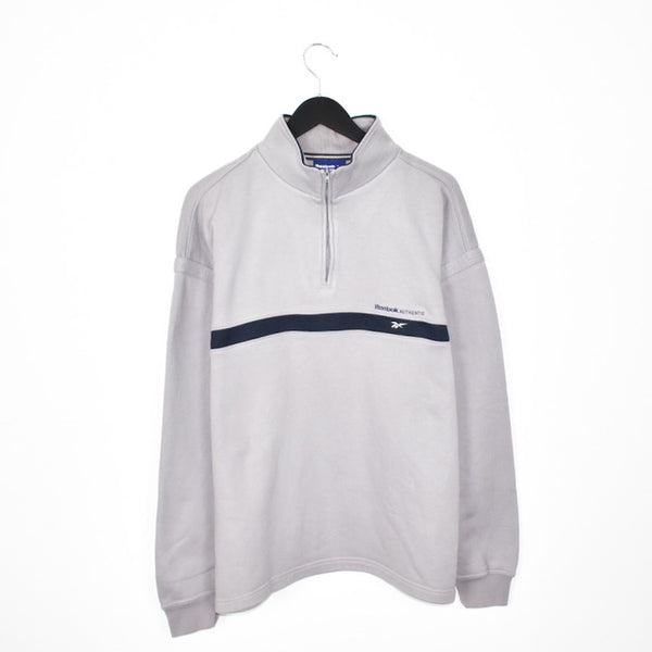 Vintage Reebok quarter zip up sweatshirt longsleeve tee pullover jumper in grey. Unisex. Same/Next day postage, instant buy is on! Great condition. Has a logo on the front. Label says M, we recommend M.