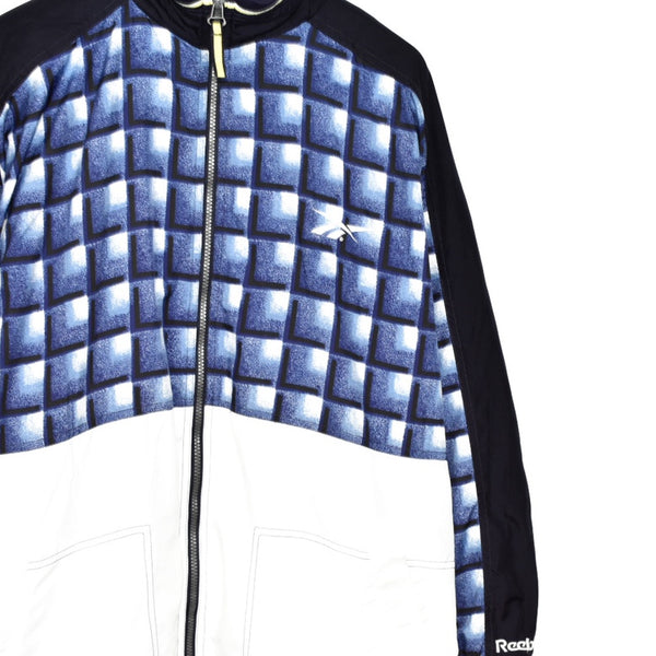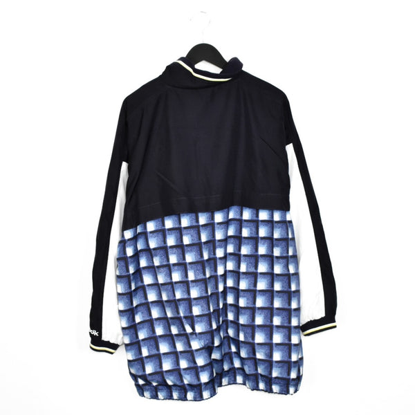 Vintage Reebok windbreaker zip up tracksuit track jacket trackie sweater jumper sweatshirt pullover long sleeve in blue and white. Unisex. Same/Next day UK postage, instant buy is on! Great condition. Features logo on the front. We recommend XXL.