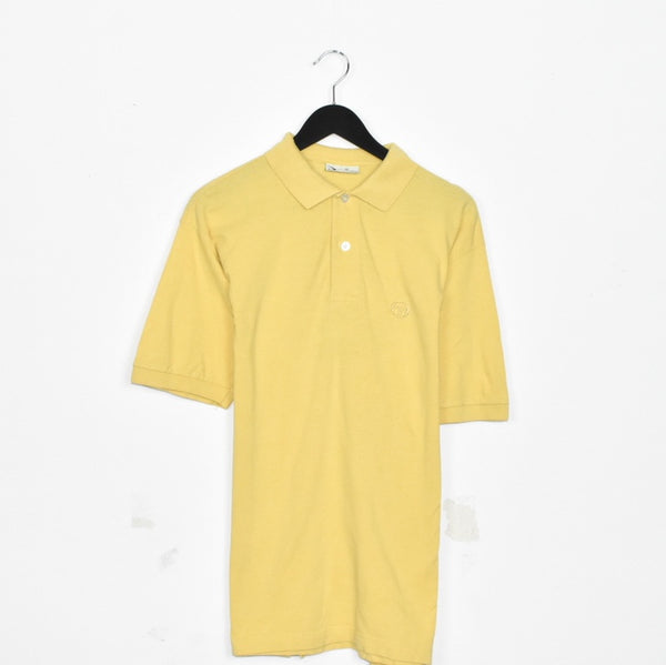 Vintage Sergio Tacchini polo shirt tee blouse top in yellow. Unisex. Same/Next day UK postage, instant buy is on! Size L best fitting. Good condition. Stain on the back. Has a logo on the front. Measurements: