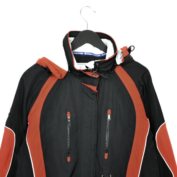 Vintage Sergio Tacchini puffer zip up jacket windbreaker tracksuit track jacket trackie sweater jumper sweatshirt pullover long sleeve in black and red. Unisex. Same/Next day UK postage, instant buy is on! Has a logo on one of the sleeves. Great condition. Label says XL we recommend XL.