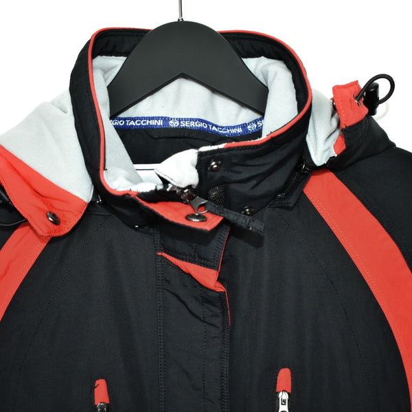 Vintage Sergio Tacchini puffer zip up jacket windbreaker tracksuit track jacket trackie sweater jumper sweatshirt pullover long sleeve in black and red