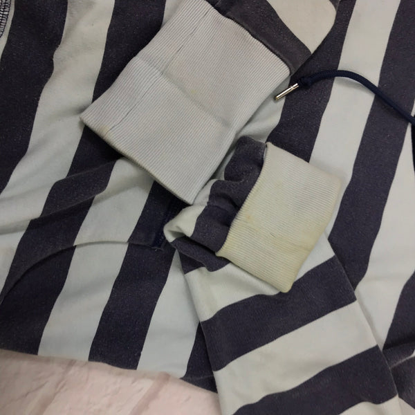 Vintage striped Nike hoodie jumper sweater pullover in blue. Unisex. Same/Next day postage, instant buy is on! Good condition apart from the sleeve discoloration. Has a big logo on the front. Size S best fitting. Model is 163cm/5ft4. Please message with any questions 👌