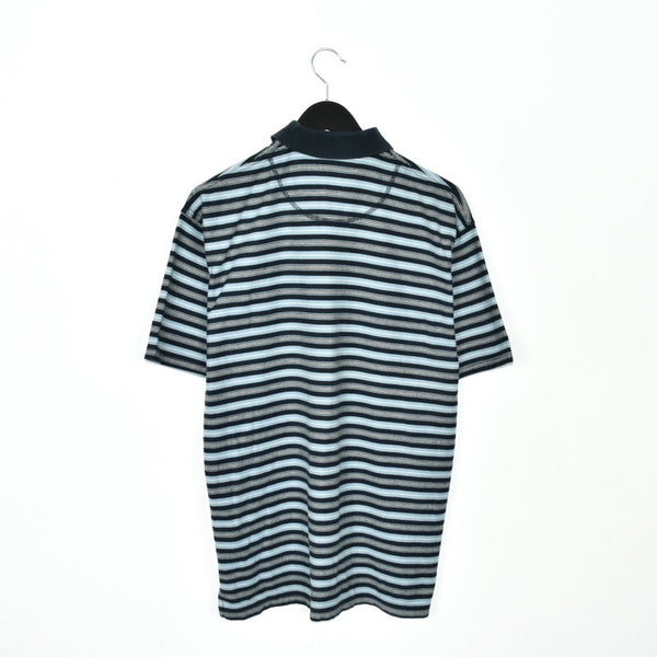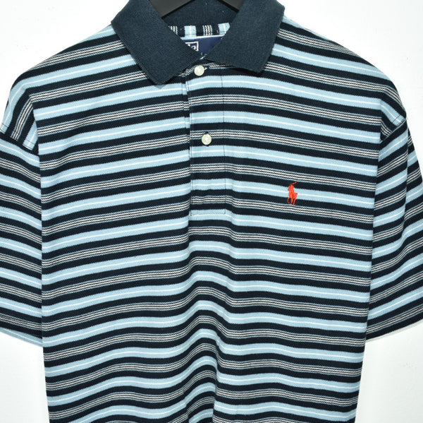 Vintage striped Ralph Lauren polo shirt t-shirt pullover in blue. Unisex. Same/Next day postage, instant buy is on! Very good condition. Features a small logo on the front. The back is longer than the front. Label says L, we recommend L.