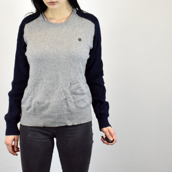 Vintage Timberland sweater pullover jumper in gray and black. Unisex. Same/Next day postage, instant buy is on! Great condition. Size S best fitting. Model is 165cm/5ft5. Please message with any questions 👌