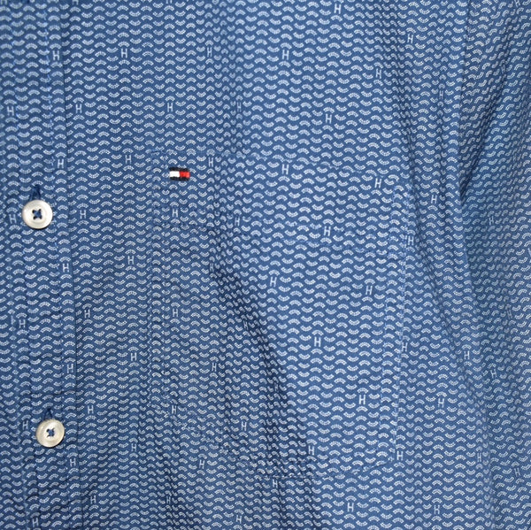 Vintage Tommy Hilfiger formal button up shirt long sleeve top in dark blue. Unisex. Same/Next day UK postage, instant buy is on! Great condition. Features Tommy Hilfiger logo on the front. Label says L, we recommend L.