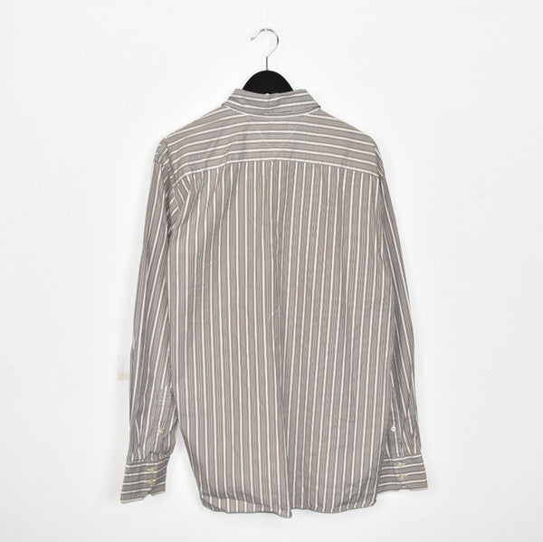 Vintage Tommy Hilfiger formal button up shirt long sleeve top in white and brown stripes. Unisex. Same/Next day UK postage, instant buy is on! Great condition. Features Tommy Hilfiger logo on the front. Label says XL, we recommend L.