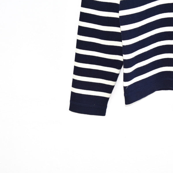Vintage Tommy Hilfiger longsleeve tee pullover sweatshirt jumper fleece in white and dark blue stripes. Unisex in dark blue. Same/Next day postage, instant buy is on! Has a logo on the front. Great condition. Label says M, we recommend M. Measurements: * Pit to pit - 18in/46cm * Top to bottom - 26in/67cm * Pit to cuff - 19in/50cm Please message with any questions AY5