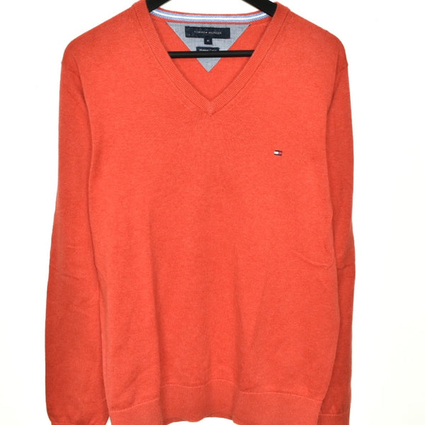 Vintage Tommy Hilfiger V-neck thin material longsleeve tee pullover sweater in orange. Unisex. Same/Next day postage, instant buy is on! Great condition. Has a logo on the front. Label says M, we recommend M.