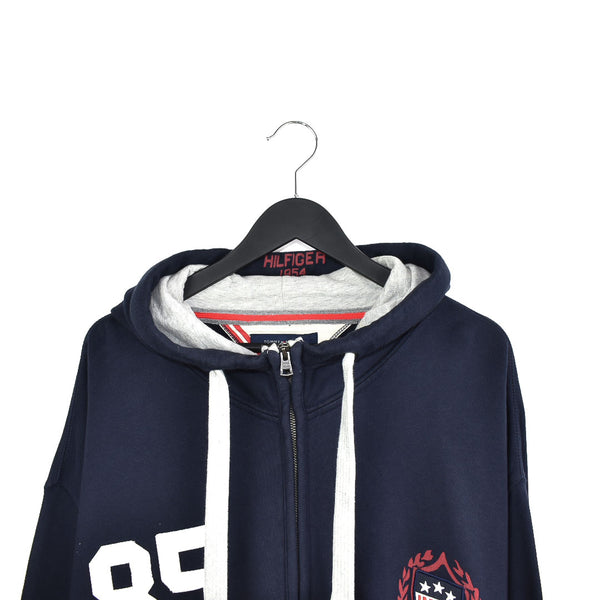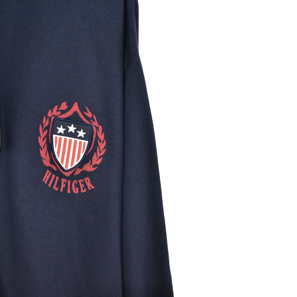 Vintage Tommy Hilfiger zip up hoodie sweater jumper sweatshirt pullover long sleeve tracksuit trackie jacket in dark blue and white. Unisex. Same/Next day UK postage, instant buy is on! Great condition. Features Hilfiger logo on the front. We recommend XXXL. Measurements: * Pit to pit - 27in/69cm * Top to bottom - 27in/69cm * Pit to cuff - 20in/51cm Please message with any questions BD9