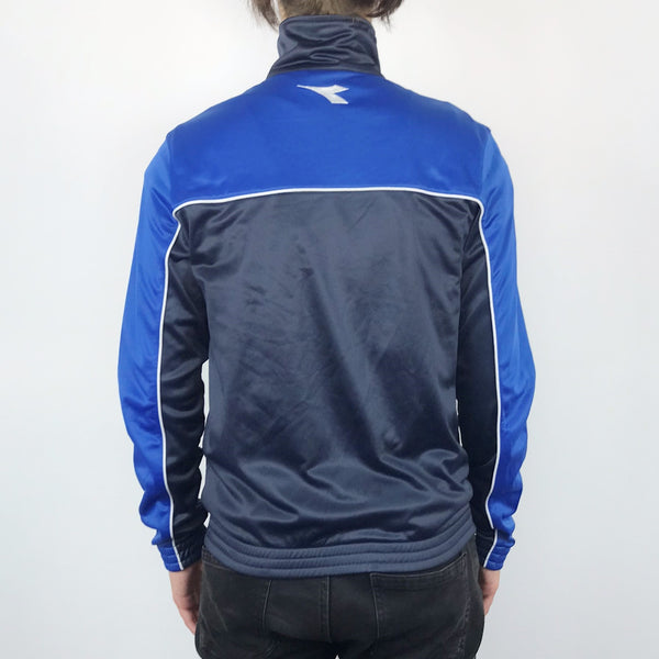 Vintage tracksuit trackie jacket zip up Diadora in blue and black. Unisex. Same/Next day UK postage, instant buy is on! Great condition piece. Pit to pit: 49cm/19.5inch.