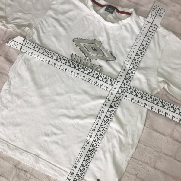 Vintage Umbro shirt tee blouse top in white. Great condition. 100% cotton. Size M/L best fitting. Model is 181cm/5ft11 @depop @depop_it @depop_uk F5