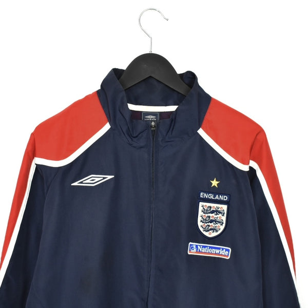 Vintage Umbro windbreaker zip up tracksuit track jacket trackie sweater jumper sweatshirt pullover long sleeve in dark blue and red. Unisex. Same/Next day UK postage, instant buy is on! Great condition. Features logo on the front. Label says XXL, we recommend XXL.