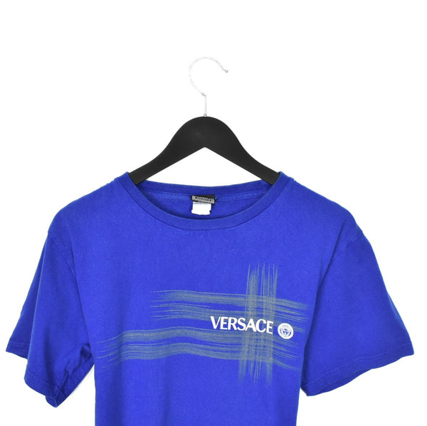 Vintage Versace tshirt tee blouse top in blue. Unisex. Same/Next day UK postage, instant buy is on! Label says L, we recommend M/S. Great condition. Has a logo on the front. Measurements: